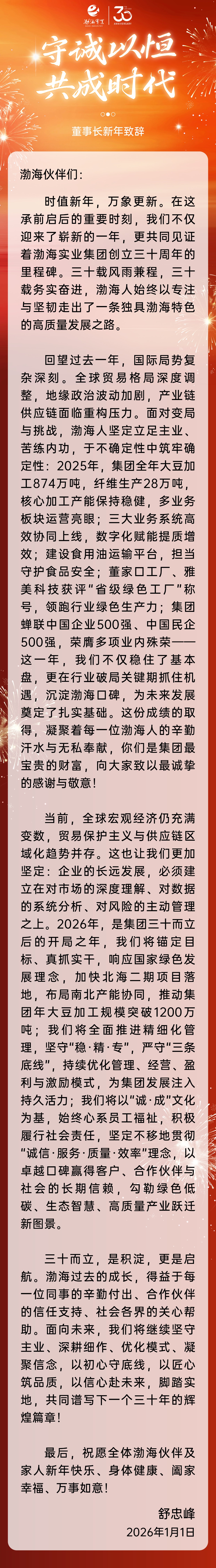 守誠以恒 共成時代|山東渤海實業(yè)集團(tuán)董事長二〇二六年新年致辭